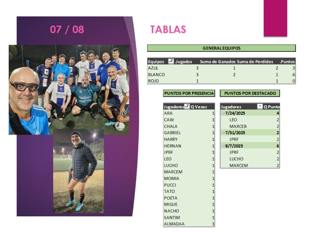 Pasando la primera mitad del partido, el protagonismo del BLANCO lo tomó otro iluminado, el tapado, el señor TATO (sponsoreado por SANDERSON), que a base de tacos, rabonas, y gambetas clavó 5 pepas para contarle a sus hijos la épica de sus jugadas.